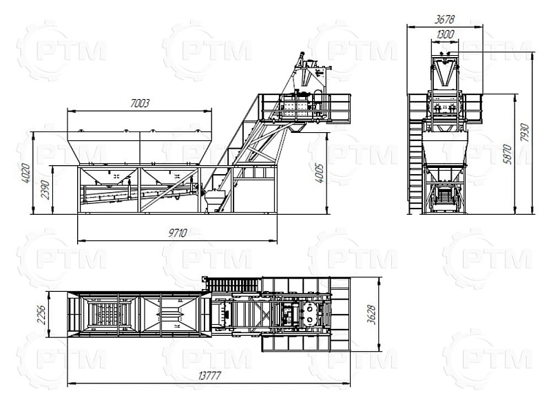 Данный завод производительность от 20 до 30 м3/час товарного бетона марки м200 или раствора. Объём загрузки бетоносмесителя 750 литров, объем выгрузки готового бетона 500 литров. Один цикл не более 55 секунд. Время работы цикла регулируется оператором бетонного завода.