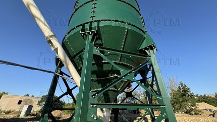 Силос цемента предназначен для хранения цемента на площадке. Силос принимает цемент по трубе закачки от цементовоза, сохраняет его от внешних воздействий. Далее цемент подается при помощи шнекового конвейера на блок дозаторов. На блоке дозаторов взвешивается и попадает в производственный цикл бетона на бетонном заводе.