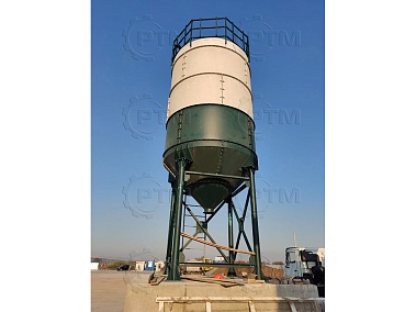 Силос цемента предназначен для хранения цемента на площадке. Силос принимает цемент по трубе закачки от цементовоза, сохраняет его от внешних воздействий. Далее цемент подается при помощи шнекового конвейера на блок дозаторов. На блоке дозаторов взвешивается и попадает в производственный цикл бетона на бетонном заводе.