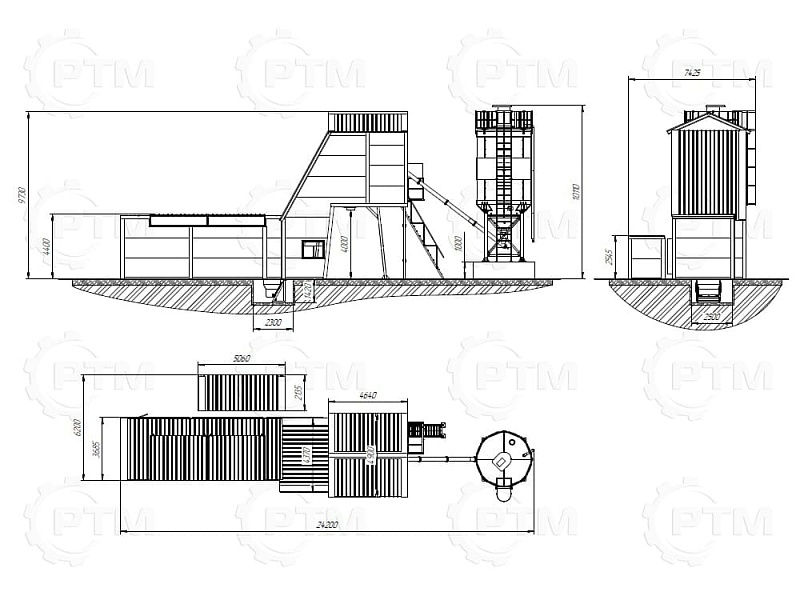 Данный завод производительность от 20 до 30 м3/час товарного бетона марки м200 или раствора. Объём загрузки бетоносмесителя 900 литров, объем выгрузки готового бетона 500 литров. Один цикл не более 55 секунд. Время работы цикла регулируется оператором бетонного завода.