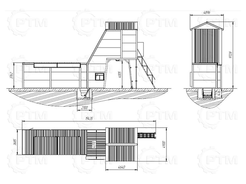 2.      После набора нужного количества материалов инертные попадают в скиповый бак, далее скиповый бак поднимается и высыпает материалы в бетоносмеситель.