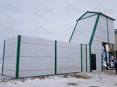 Зимний бетонный завод с двухвальным бетоносмесителем — это производственное оборудование, которое используется для смешивания и производства бетонной смеси с высокой производительностью и качеством, завод автоматический, принцип “одна кнопка” Он состоит из следующих основных компонентов: